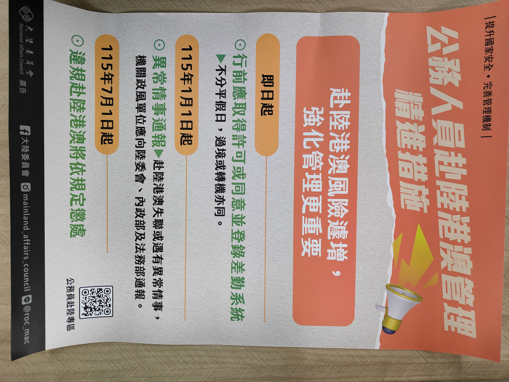 檢送「國人赴陸港澳動態登錄系統」之宣導海報,請協助宣導並依相...